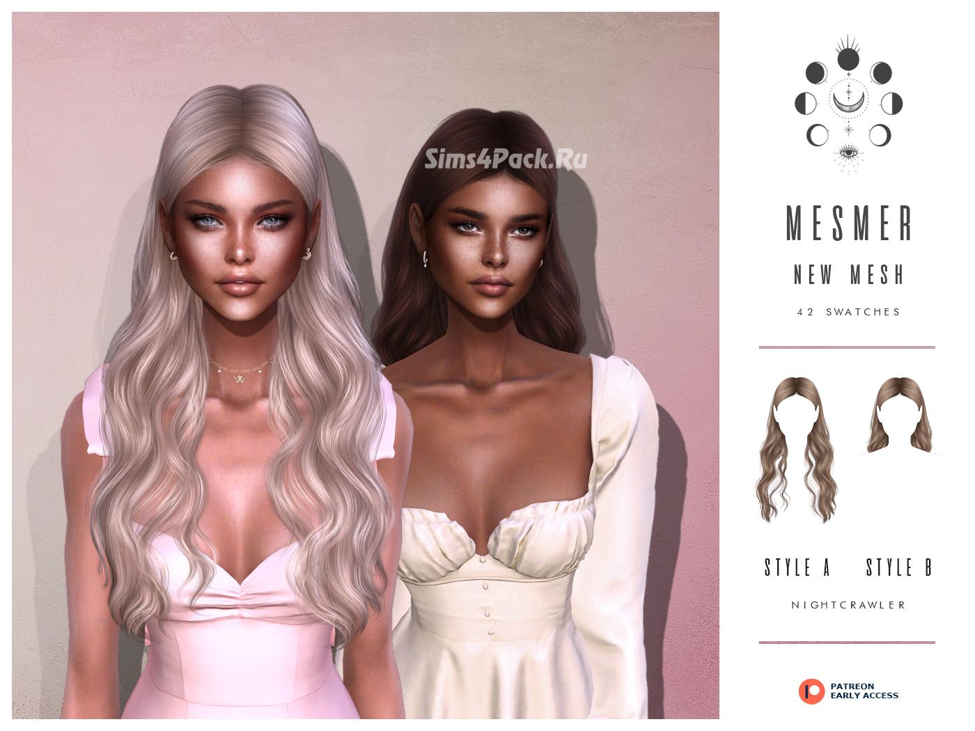 Длинные волнистые волосы с пробором посередине в 2 версиях и 42 цветовых образцах. Прическа не работает с головными уборами. Доступна для женщин.