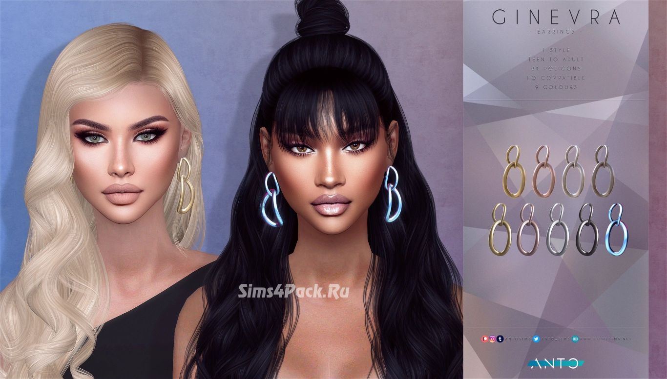 Серьги Ginevra Earrings для Симс 4