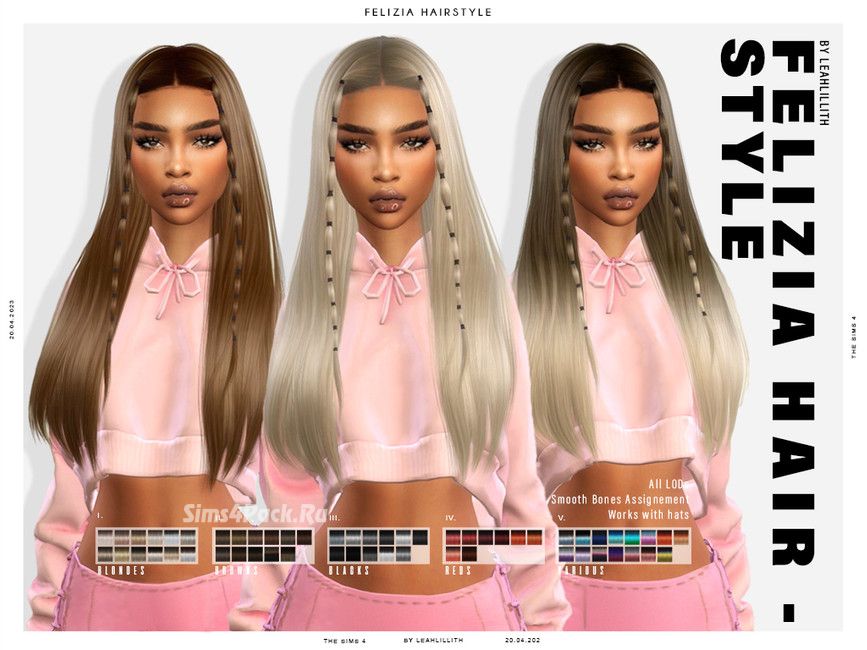 Женская прическа Felizia Hairstyle для Симс 4
