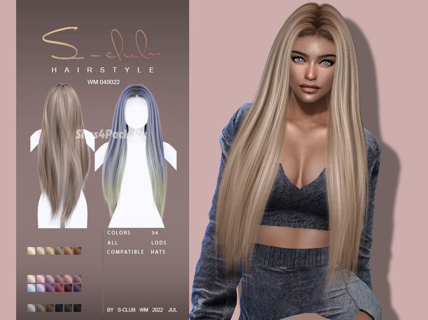 Прическа LONG STRAIGHT HAIRSTYLE MARILOU для Симс 4