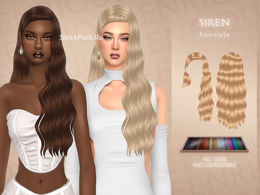 Шикарная укладка на длинных волнистых волосах в 24 EA цветовых образцах. Прическа частично работает с головными уборами. Maxis Match. Доступна для женщин.