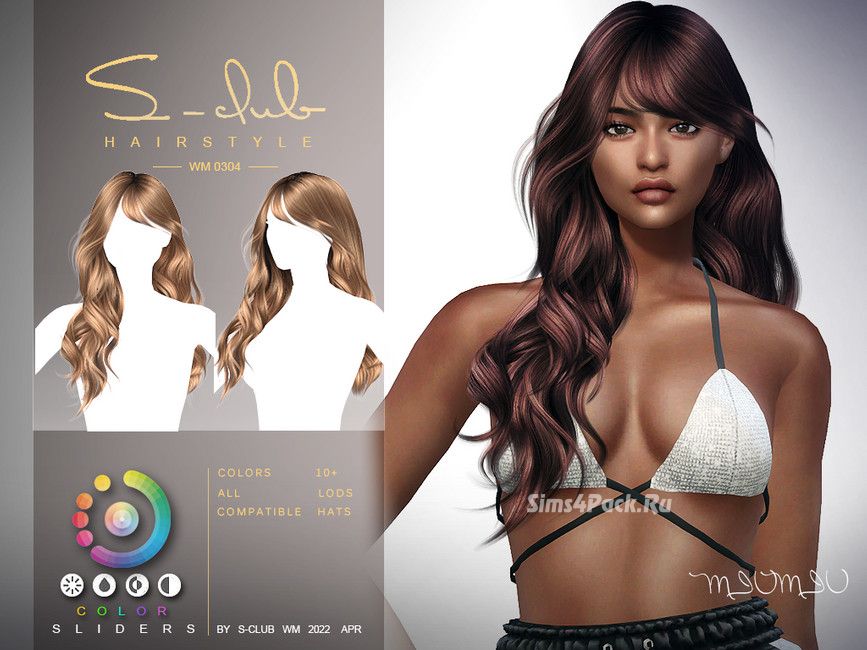Женская прическа Long wavy female with bangs hairstyle для Симс 4