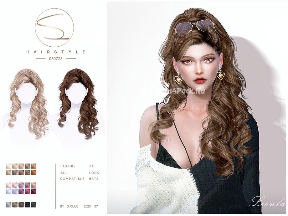 Женская прическа Curly ponytail hair 030723(Leonia) для Симс 4
