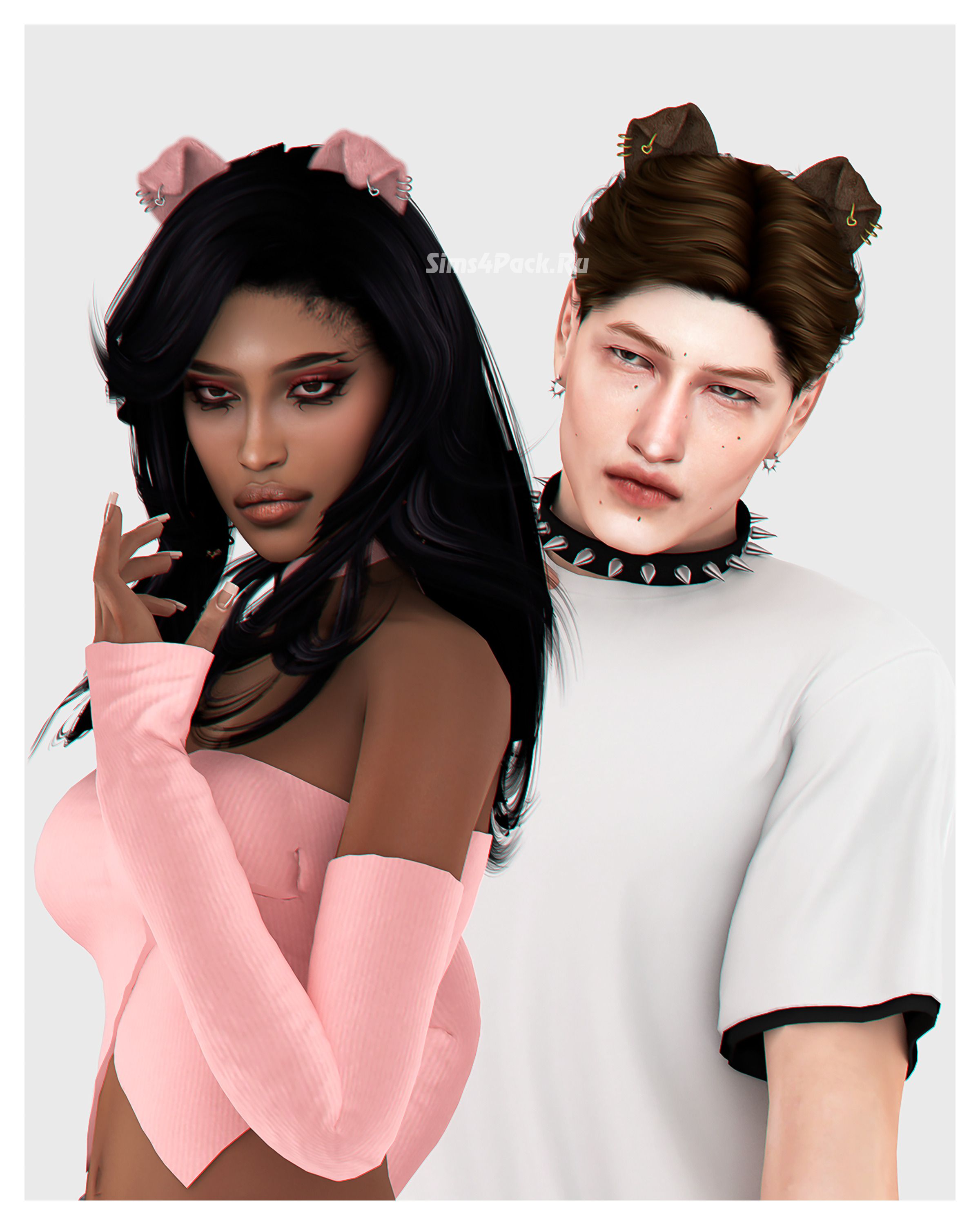 Щенячьи ушки с пирсингом Fluffy Puppy Ears with Piercings для Симс 4