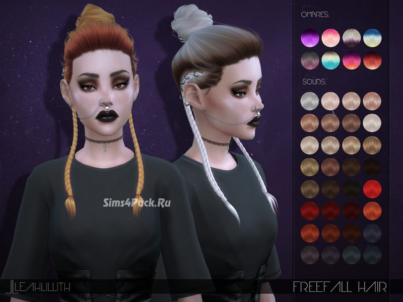 Высокий пучок с косичками по бокам в 27 цветовых вариантах. Прическа совместима с головными уборами. В комплекте аксессуар для волос. HQ текстура присутствует.
