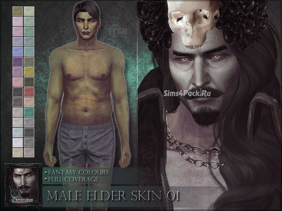 Мистический скинтон для пожилых мужчин Male Elder Skin 01 - Fantasy version для Симс 4