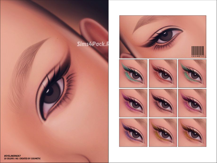 Макияж глаз и 2D ресницы Eyeliner With 2D Eyelashes N267 для Симс 4