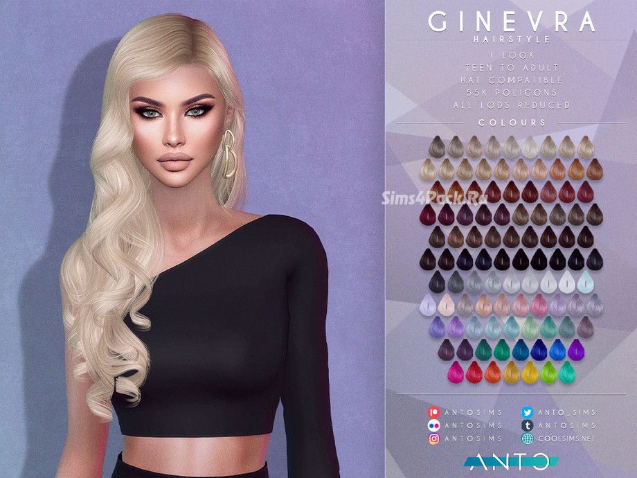 Женская прическа Ginevra для Симс 4