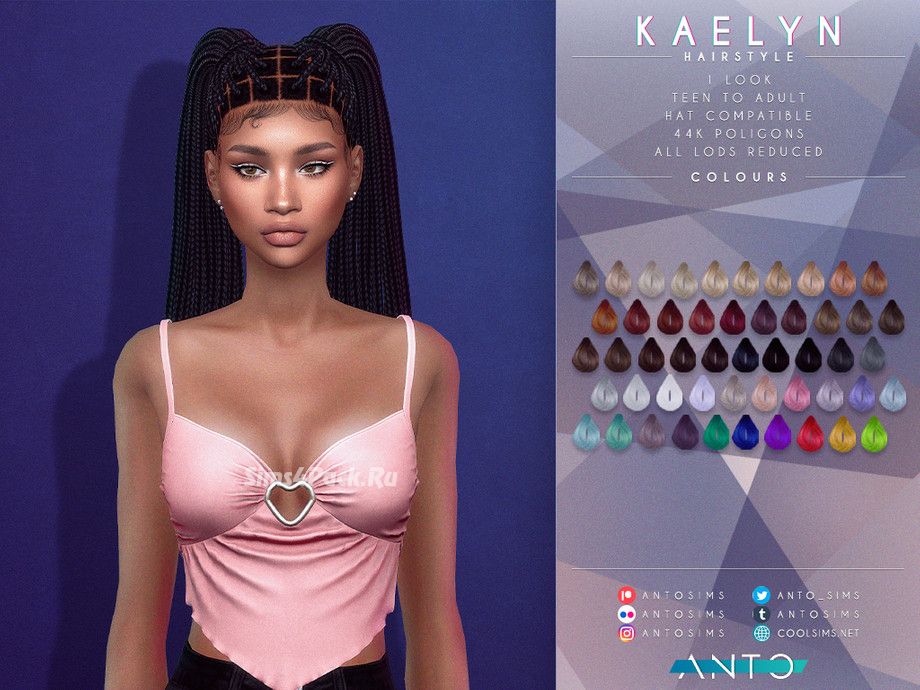 Женская прическа Kaelyn Hairstyle для Симс 4
