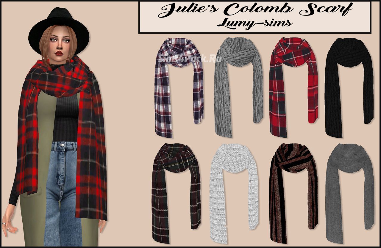 Шарф JULIES COLOMB SCARF для Симс 4