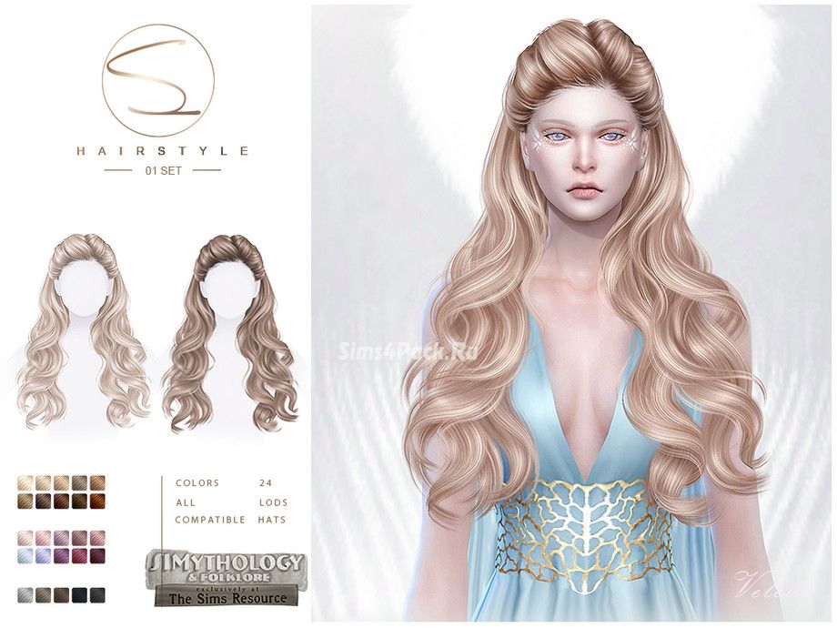 Женская прическа SIMythology hairstyle 01 для Симс 4