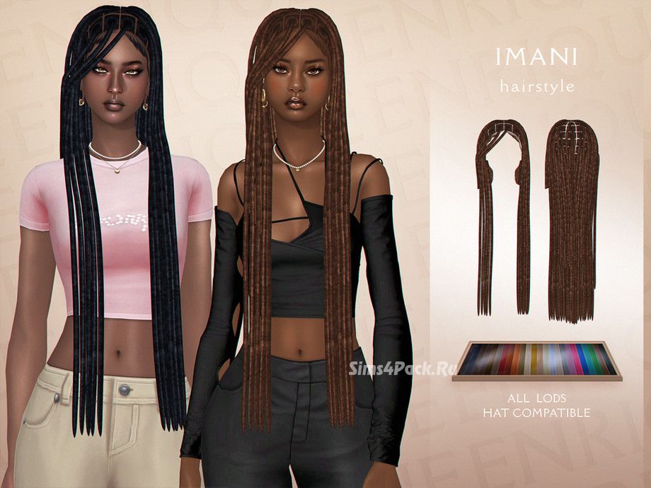 Мега-длинные Maxis Match афрокосички в 24 EA свотчах. Причёска частично работает с головными уборами. Доступна для женщин.