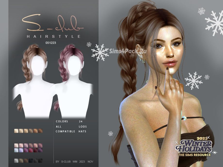 Женская прическа BRAID hairstyle 051223 EMA для Симс 4