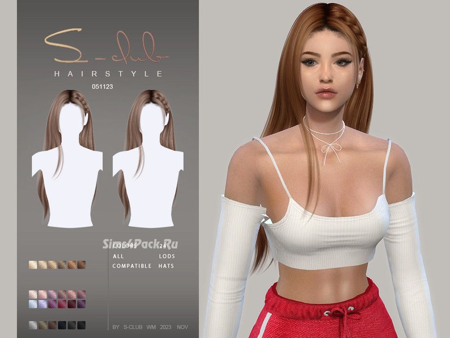 Прическа LONG STRAIGHT HAIR WITH BRAID ALICIA 051123 для Симс 4