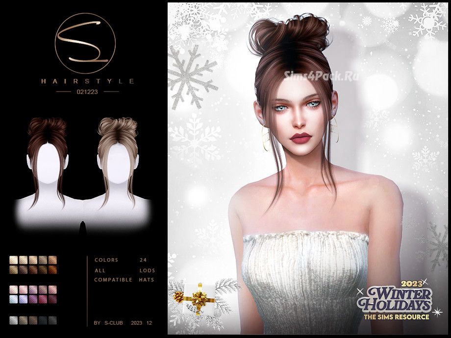 Женская прическа Winter Holidays 2023 Hair 02 для Симс 4