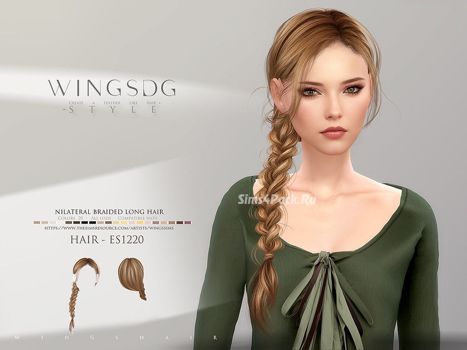 Прическа WINGS-ES1220-Unilateral braided long hair для Симс 4