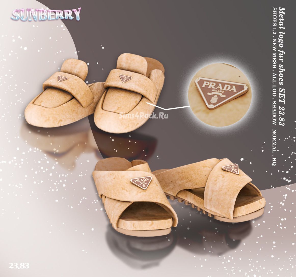 Обувь для симочек Metal logo fur muleand Sandals SET 23.83 для Симс 4