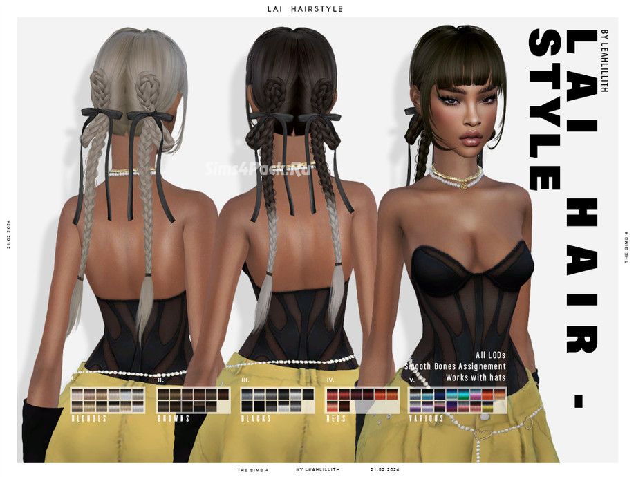 Женская прическа Lai Hairstyle для Симс 4