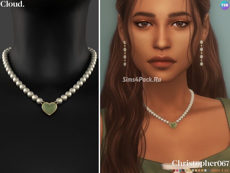 Ожерелье из жемчуга + небольшой кулон в форме сердечка в 40 цветовых опциях. Совместимо с HQ модом. Доступно для женщин.
