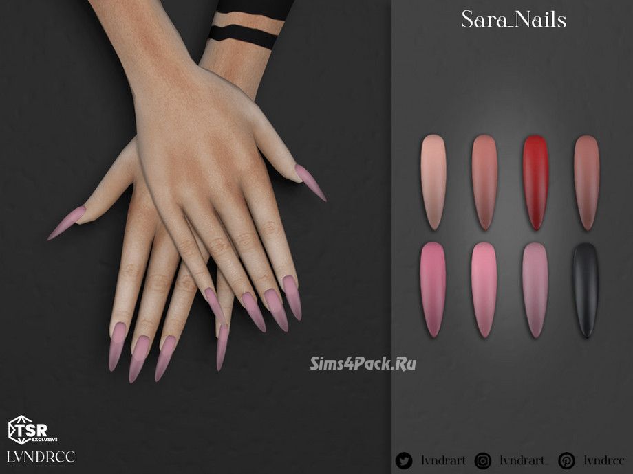 Полупрозрачный длинный миндаль в разнообразных нейтральных оттенках розового и коричневого и более эффектных чёрного и красного. Доступен для женщин.