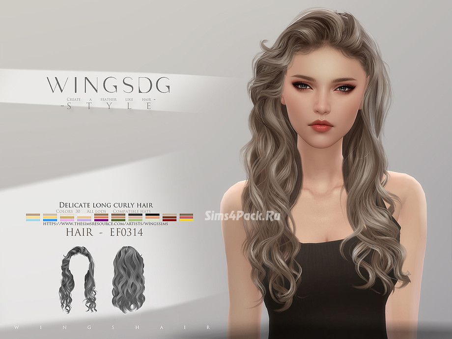 Прическа WINGS-EF0314-Delicate long curly hair для Симс 4