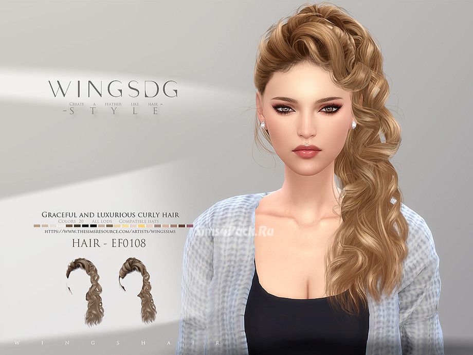Прическа WINGS-EF0108-Graceful and luxurious curly hair для Симс 4