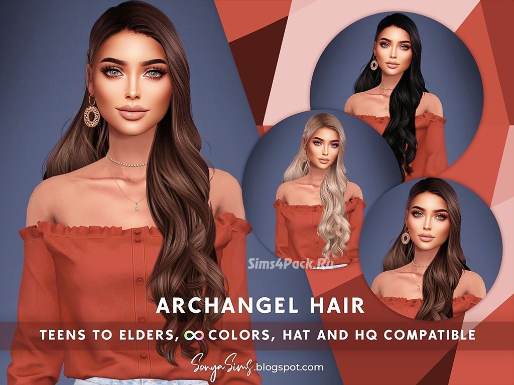 Прическа для женщин и девочек Archangel Hair для Симс 4