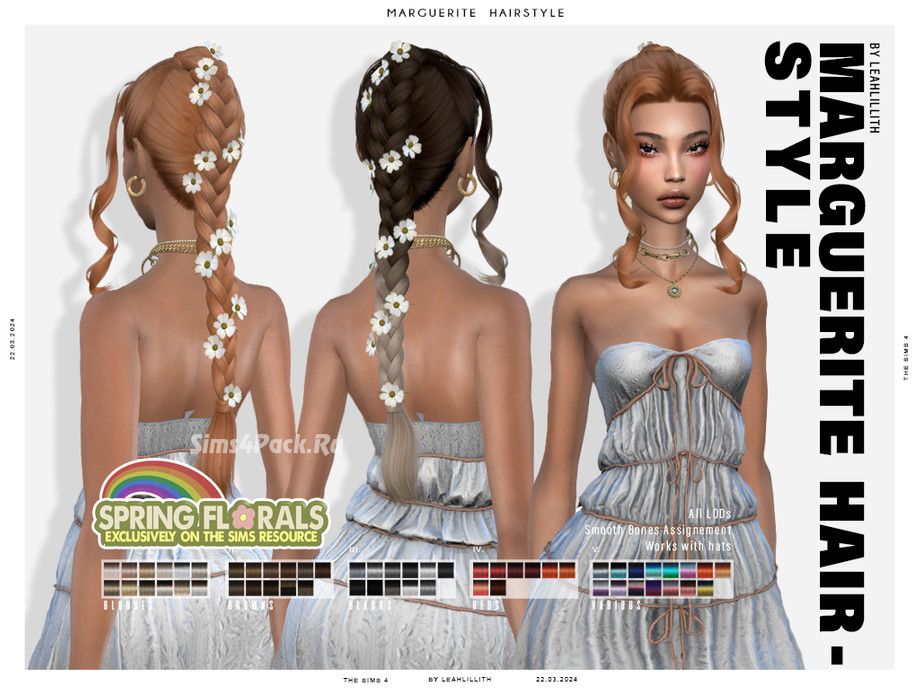 Женская прическа Marguerite Hairstyle для Симс 4