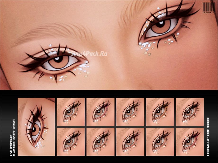 Эффектный макияж глаз с глиттером и нарисованными ресничками в 10 цветовых опциях. Maxis Match. Доступно для женщин.