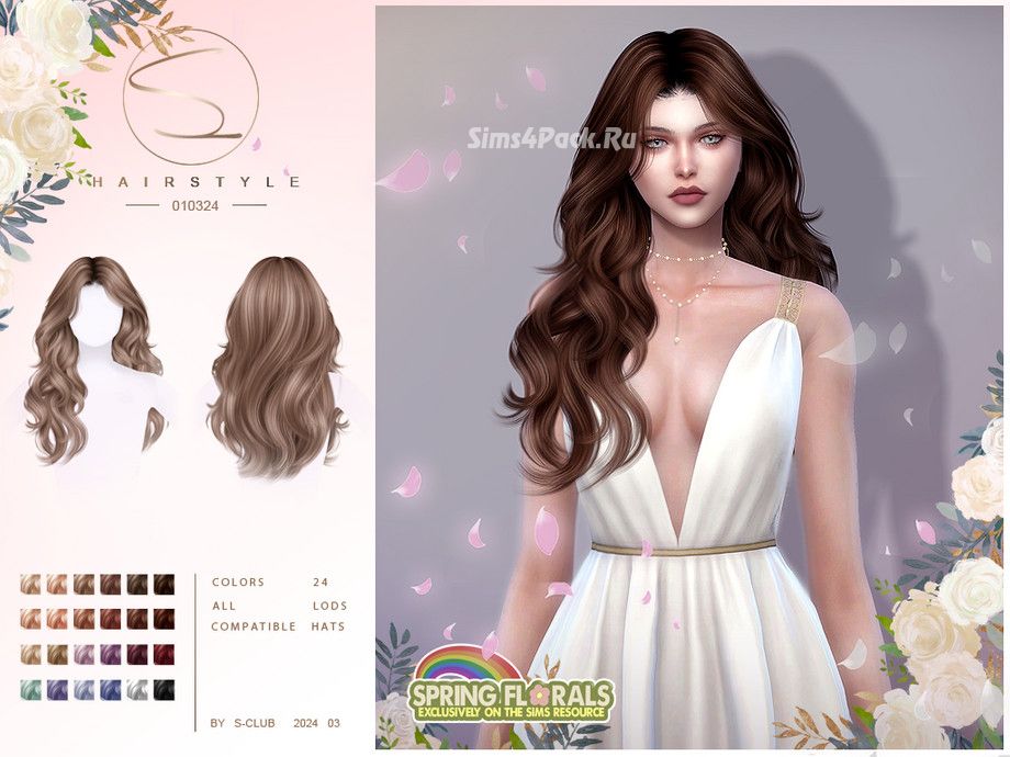 Густые длинные волнистые волосы в 24 цветовых решениях. Причёска частично работает с головными уборами. Доступна для женщин.