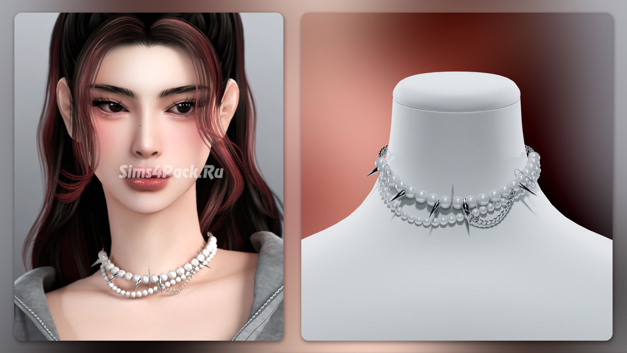 Колье с шипами, жемчугом и цепью в 3 свотчах. HQ совместимо. Доступно для женщин.