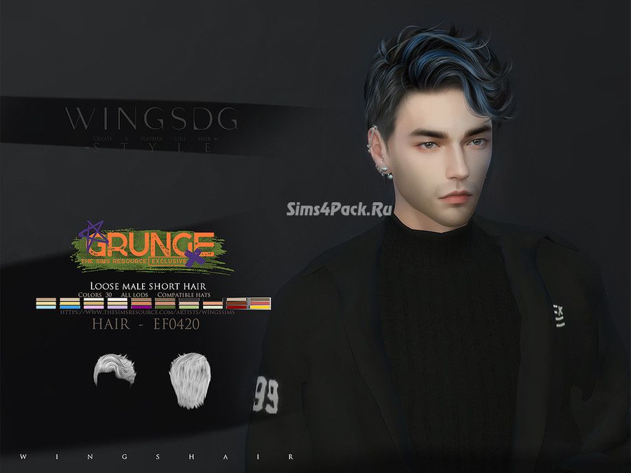 Прическа WINGS-EF0420-Loose male short hair для Симс 4