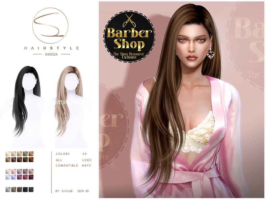 Красивые длинные прямые волосы, уложенные на косой пробор, в 24 цветовых образцах. Причёска частично работает с головными уборами. Доступна для женщин.