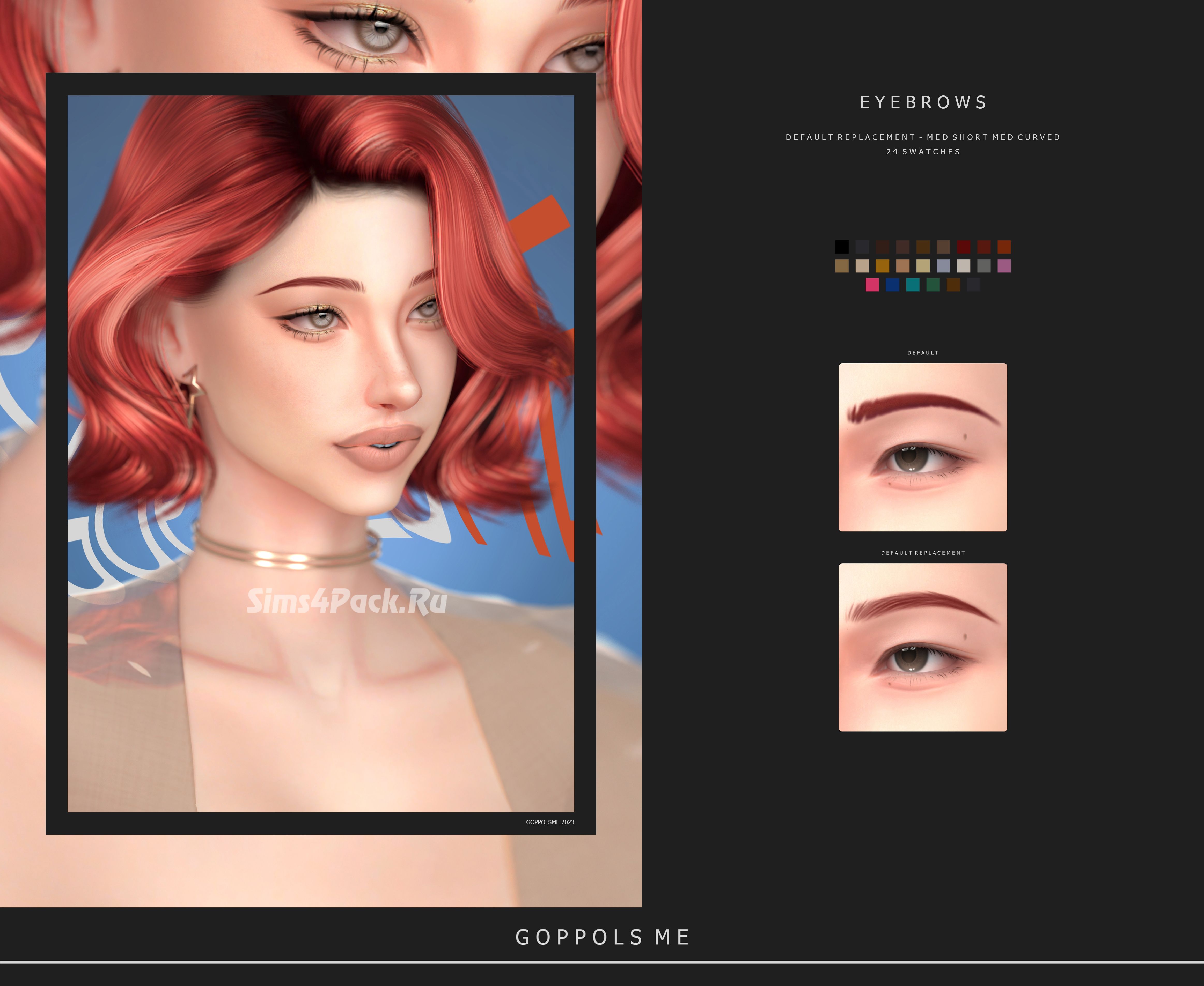 Брови для симочек и симов Eyebrows Default Replacement - 05MedShortMedCurved для Симс 4