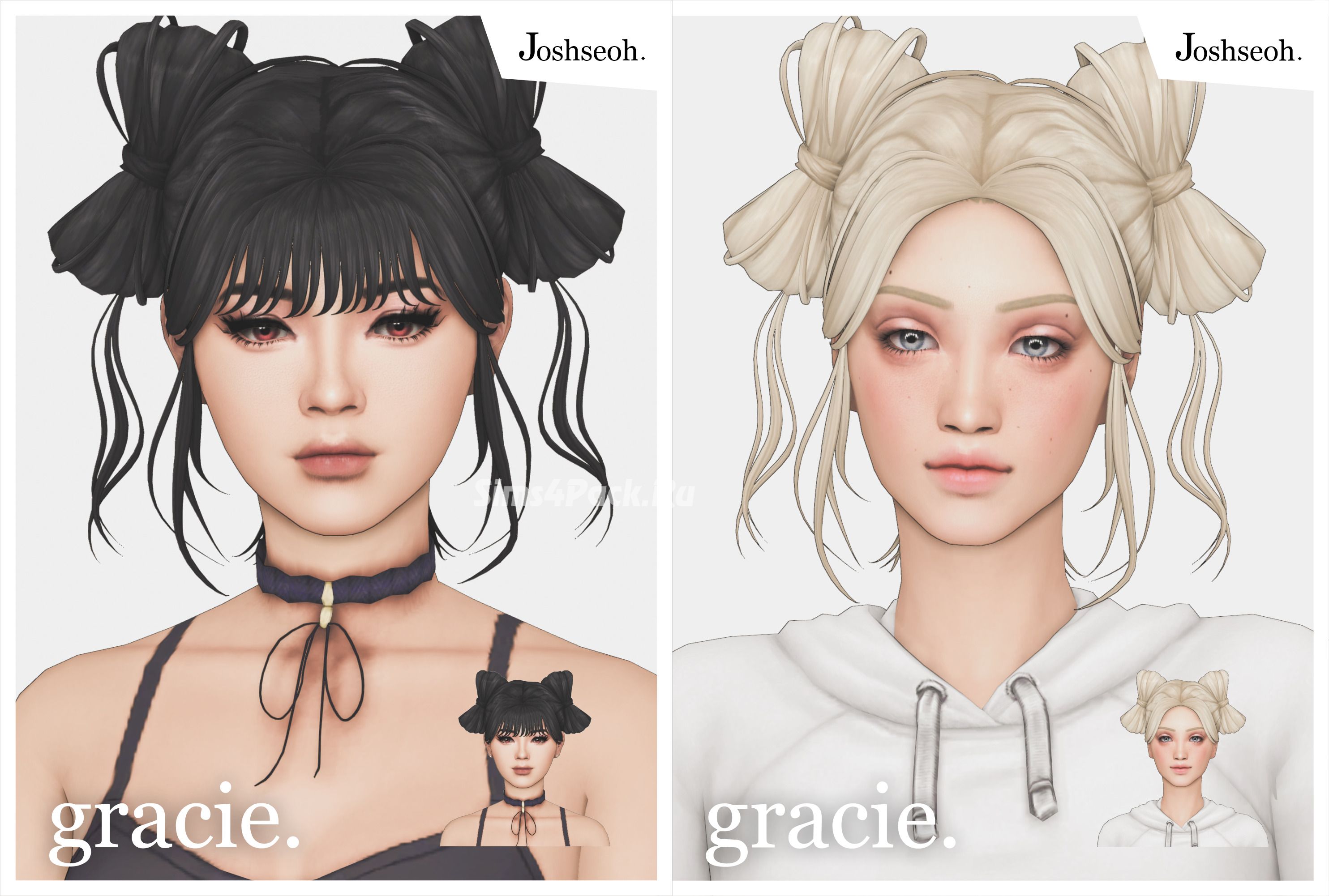 Причёска с бантиками из волос в 4 версиях (с чёлкой/без чёлки, с прядками/без прядок) и 24 EA цветах. Частично работает с головными уборами. Maxis Match. Доступна для женщин.