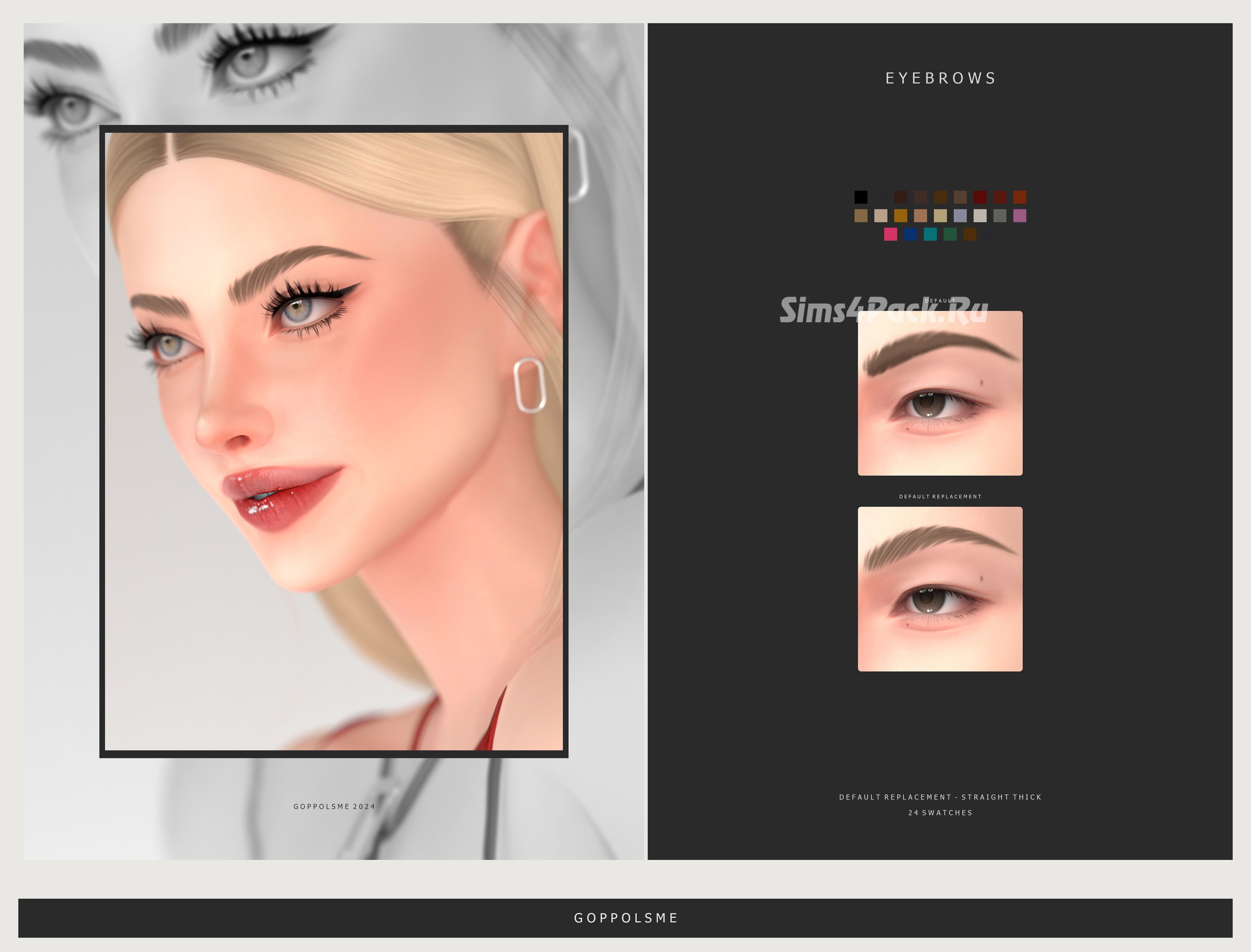 Тонкие, слегка изогнутые брови, для замены одних из стандартных по умолчанию. 24 EA свотча. Доступны для женщин и мужчин.