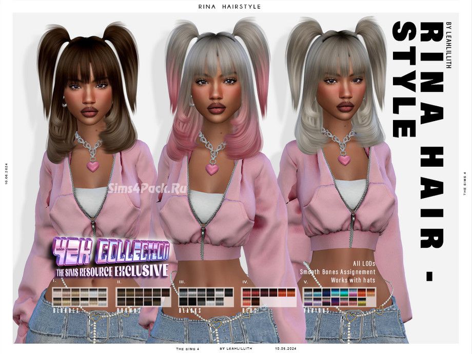 Женская прическа Y2K Rina Hairstyle для Симс 4