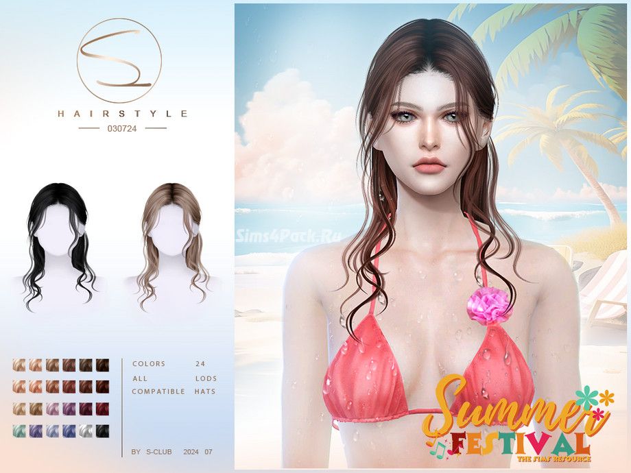 Женская прическа Wet hairstyle 030724 для Симс 4