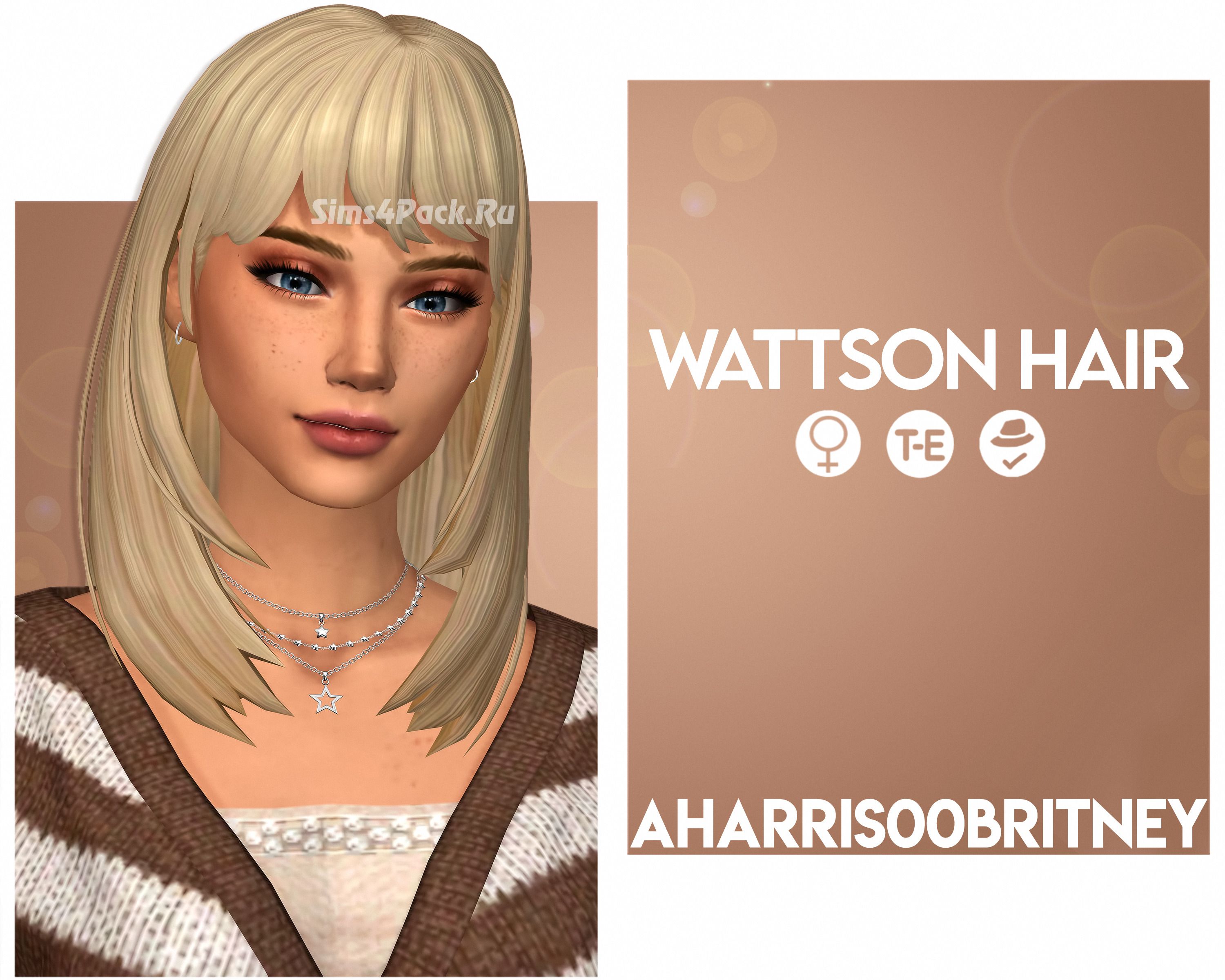 Лесенка на удлинённом каре с чёлочкой в 24 EA свотчах. Причёска частично работает с головными уборами. Maxis Match. Доступна для женщин.