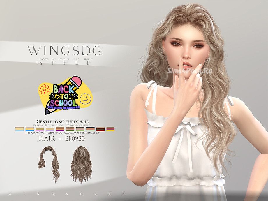 Прическа WINGS-EF0920-Gentle long curly hair для Симс 4