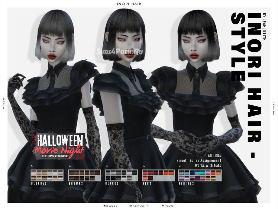 Женская прическа Halloween Movie Night Inori Hairstyle для Симс 4