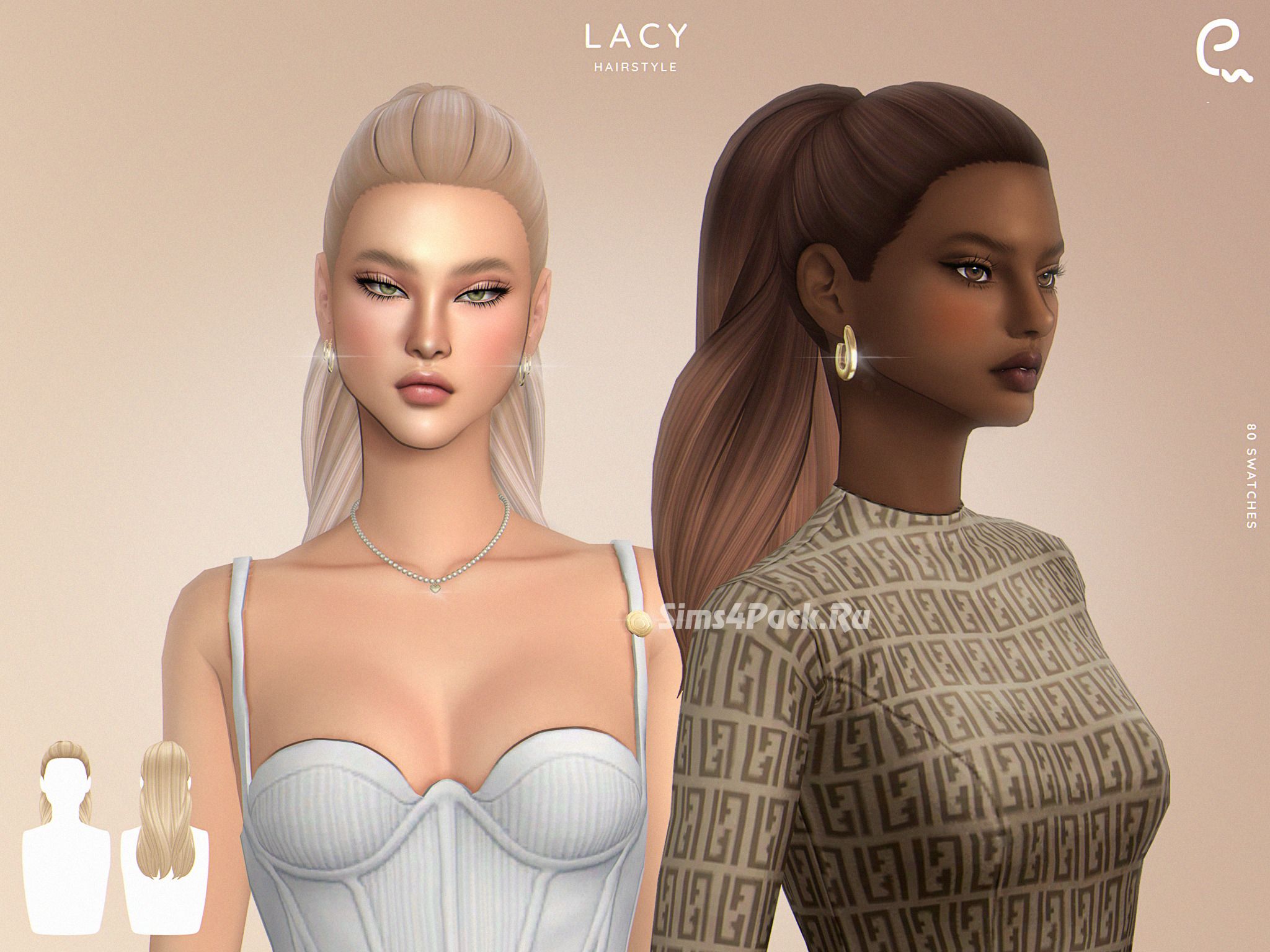 Высокий конский хвост на длинных густых волосах в 24 цветовых образцах (доп. эффекты окрашивания не включены). Причёска частично совместима с головными уборами. Maxis Match. Доступна для женщин.