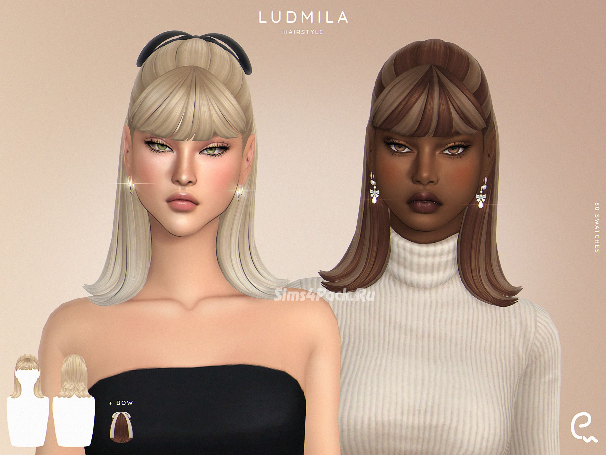 Удлинённое каре с чёлочкой в 24 цветовых образцах (доп. эффекты окрашивания не включены) + бантик в 14 свотчах. Причёска частично совместима с головными уборами. Maxis Match. Доступна для женщин.