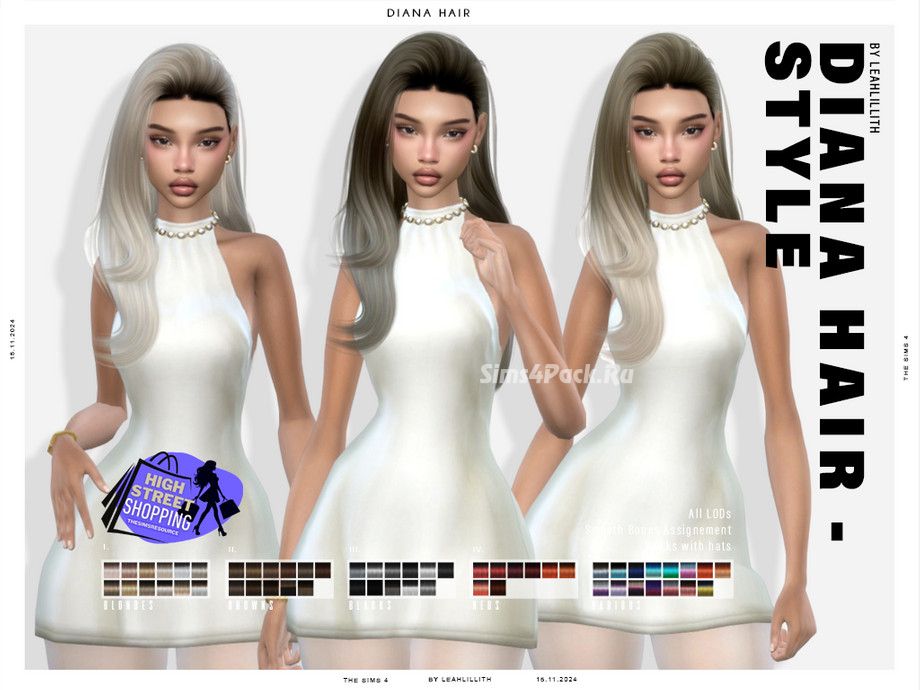 Женская прическа High Street Shopping Diana Hairstyle для Симс 4