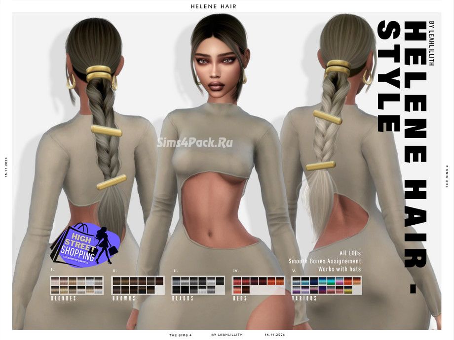 Женская прическа High Street Shopping Helene Hairstyle для Симс 4