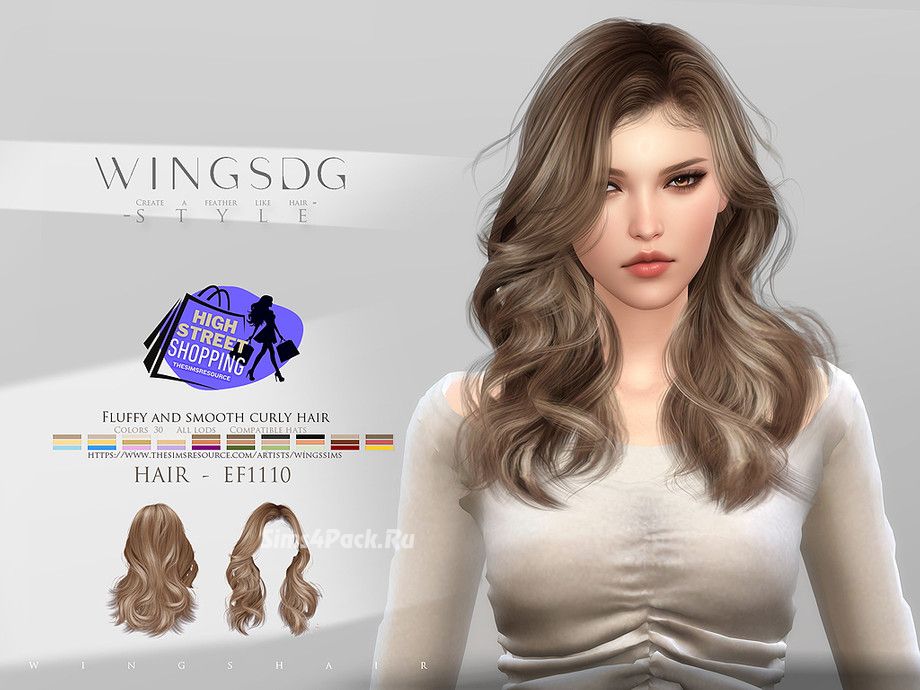 Прическа WINGS-EF1110-Fluffy and smooth curly hair для Симс 4