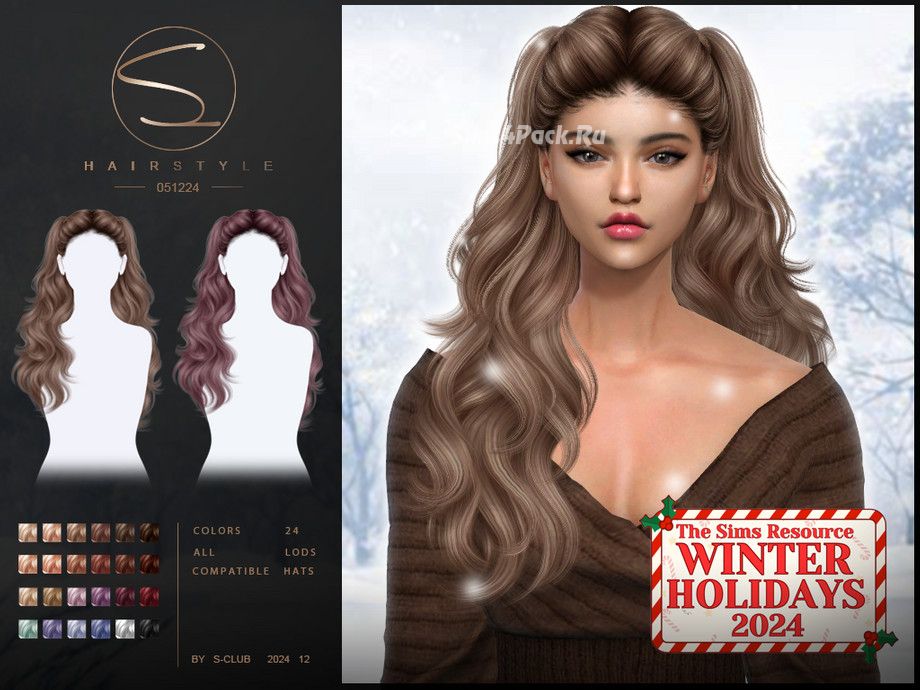 Женская прическа (WINTER)WAVY HAIRSTYLE 051224 для Симс 4