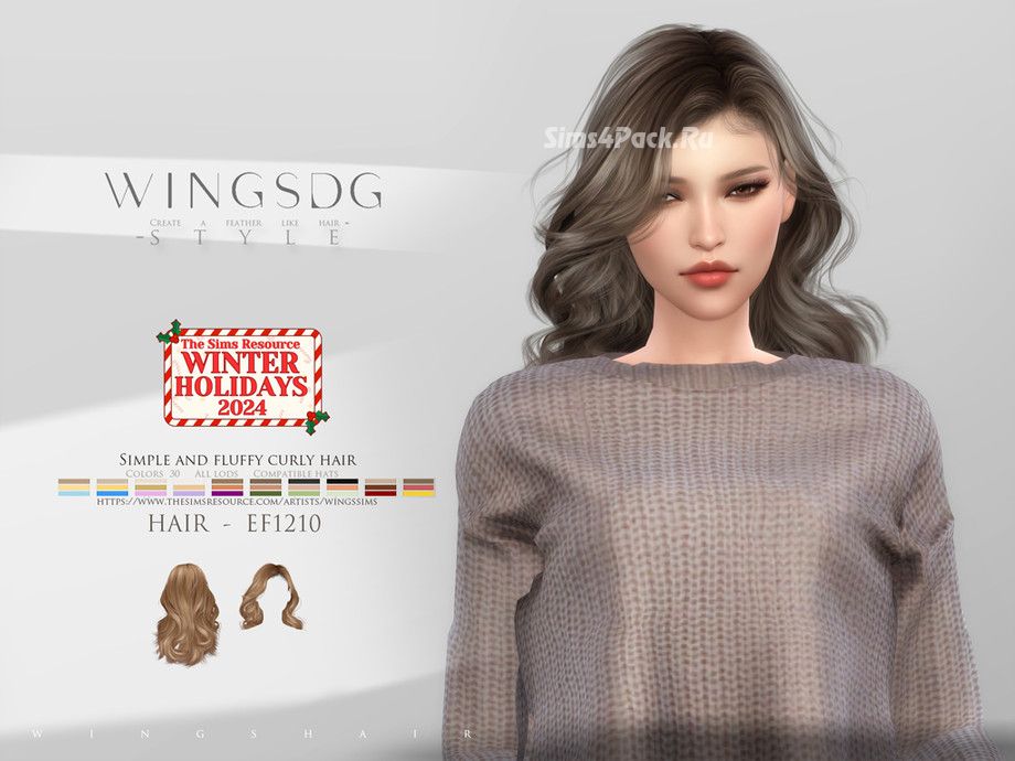 Прическа WINGS-EF1210-Simple and fluffy curly hair для Симс 4