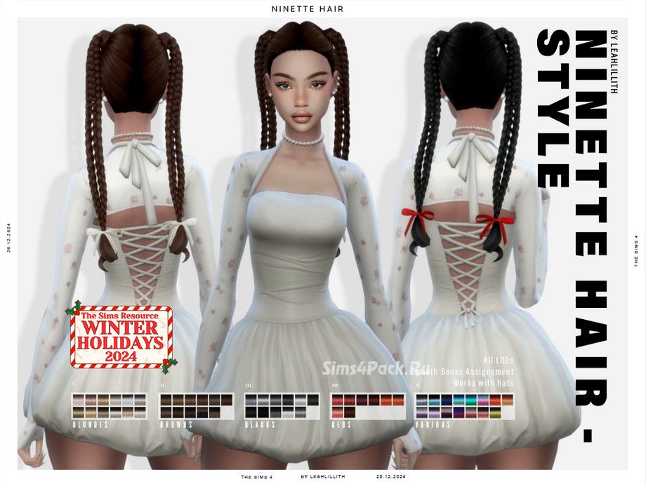 Два высоких хвостика с косичками в стиле Maxis (24 св.) + бантики (6 св.) для ваших симочек. Причёска не работает с головными уборами.