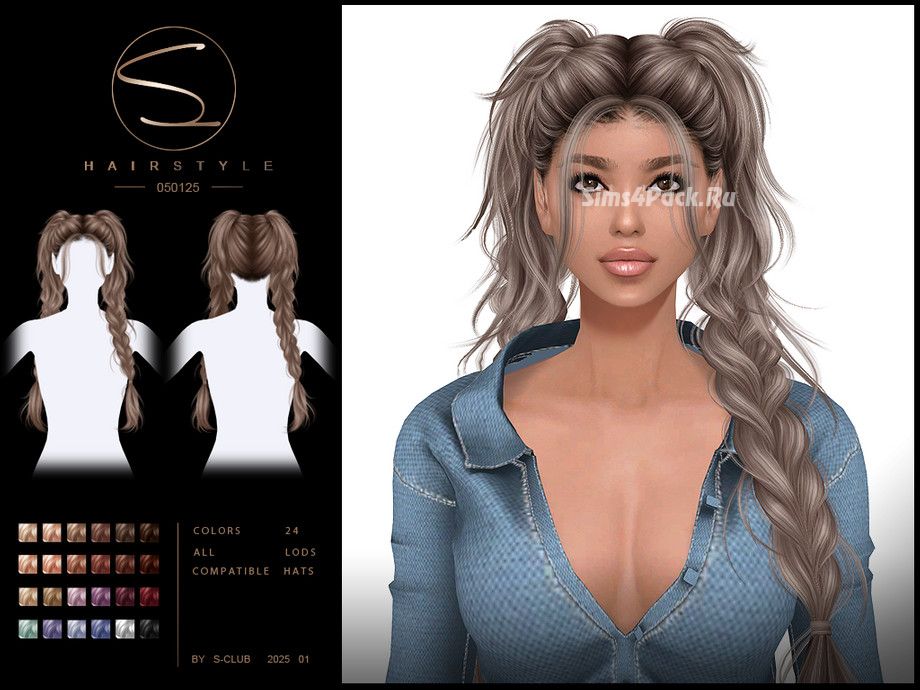 Женская прическа Double braid hairstyle 050125 для Симс 4